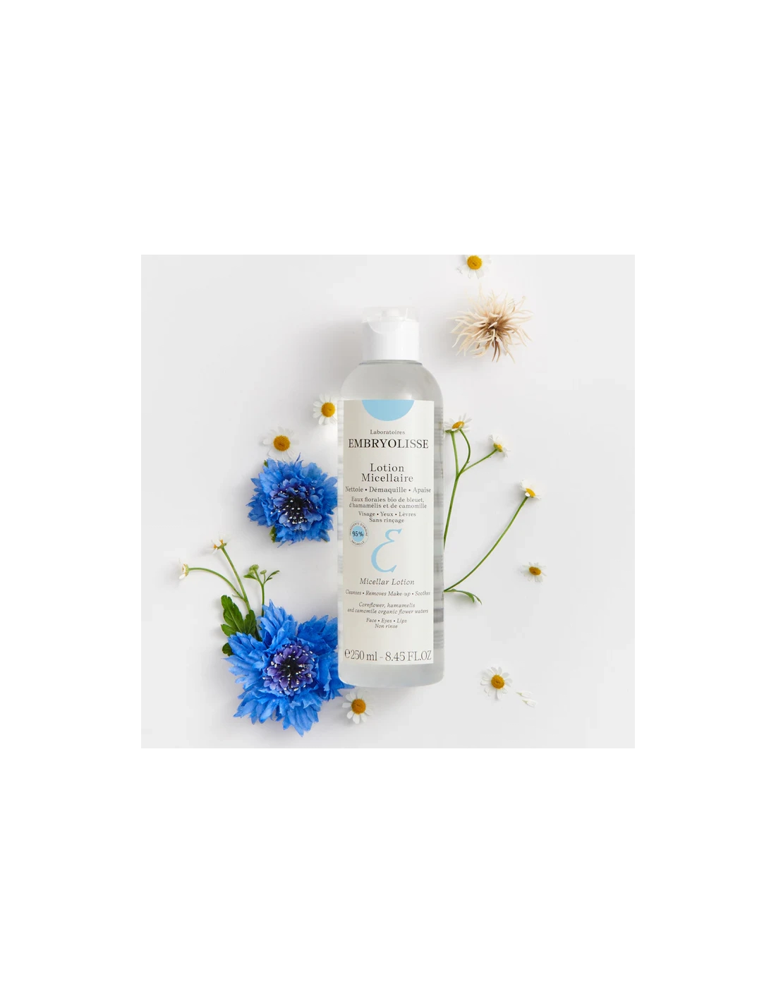 Avec le maquillage et la pollution, la peau a besoin d’une bouffée d’air frais. Geste essentiel de votre routine beauté, le démaquillage n’a besoin que d’un produit : la Lotion Micellaire Embryolisse. Sa formule aux micelles élimine, sans agresser la peau, les impuretés et le maquillage tout en laissant une sensation de fraîcheur.